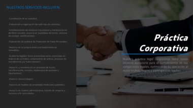 materia de contratos; compraventa de activos, procesos de                                                         Nuestra práctica legal corporativa tiene como